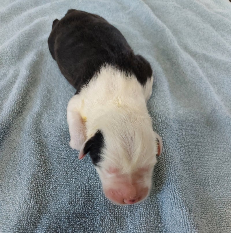 She gave birth to beautiful puppies—no white black. She can consider herself a proud mother.