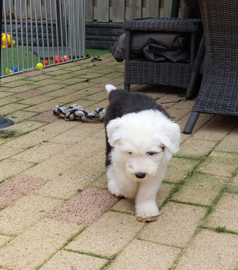 Richard, Mike and I went to Radewijk, because the Old English Sheepdog championship club match was being held there. We still had puppies from Xanthy at the time and they had already been vaccinated and were also almost 7 weeks old. We took them with us, so they could socialize nicely.