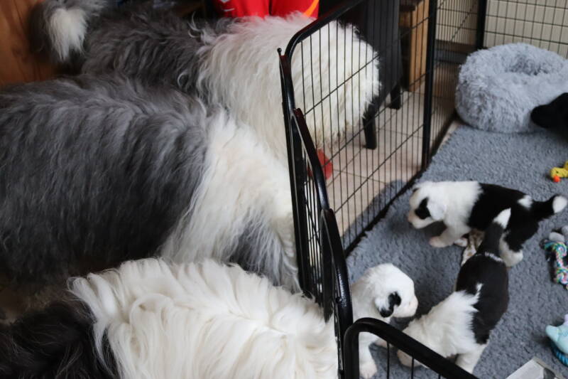 Good feeling with these puppy people. They have all had or still have an Old English Sheepdog. Lots of love for the breed and that does us good.