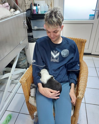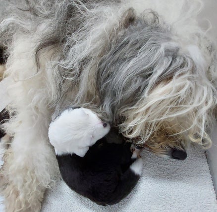 Finally an assistant arrived with 3 puppies. The puppy with the slow heartbeat had survived and turned out to be a male too.